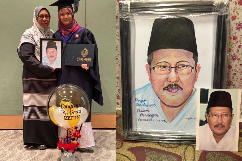 Konvokesyen Zety sempena tamat pengajian peringkat ijazah sarjana muda turut 'ditemani' potret arwah ayahnya.