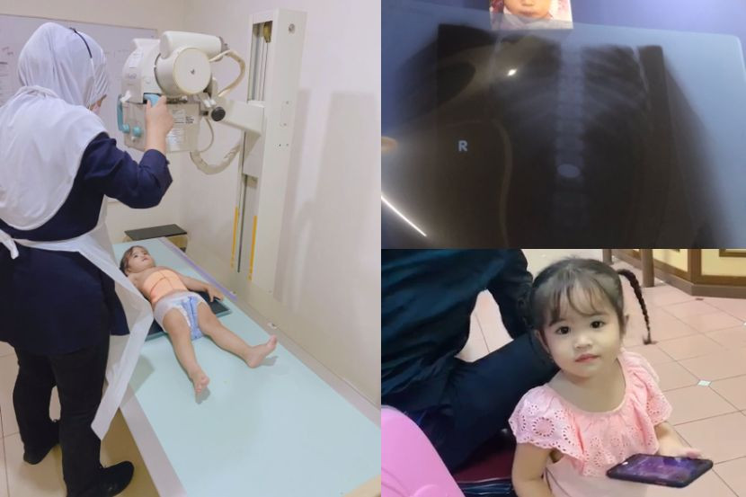 "Lepas dia muntah tu nampak dia okay, dia minta air. Kami bawa juga ke Hospital Kuala Lumpur tapi ramai orang, jadi nurse cakap lama kena tunggu dalam lima jam, jadi kami terus cari klinik 24 jam, tapi tak boleh X-ray malam-malam, jadi keesokkannya baru X-ray di hospital swasta.