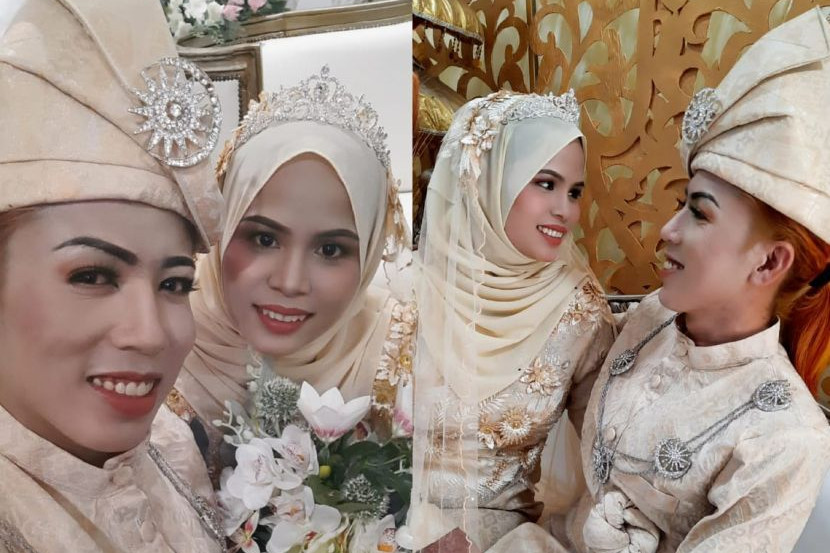 Bagaimanapun video yang dikongsikan di laman sosial ketika momen istimewa itu mendapat reaksi yang pelbagai daripada netizen gara-gara penampilan 'feminin' si suami.