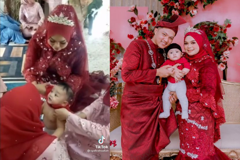 Pengantin perempuan, Sofiah Syafirah Mohd Zin berkata, anak lelakinya baru berusia tujuh bulan pada majlis persandingannya, Sabtu lalu.