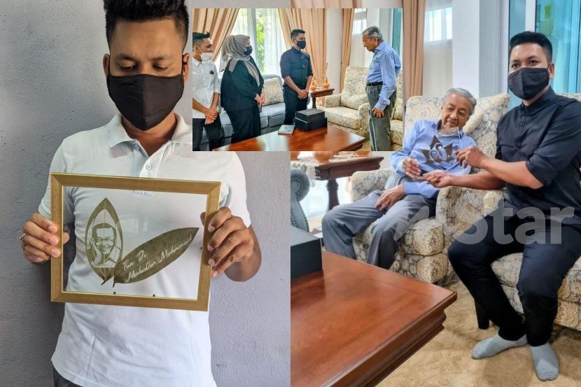 TUAH ayam nampak di kaki, tuah manusia siapa yang tahu. Impian seorang pemuda yang berbakat mengukir daun untuk bertemu bekas Perdana Menteri, Tun Dr Mahathir Mohamad akhirnya menjadi kenyataan. Semuanya bermula dengan daun yang diukir potret Dr Mahathir dengan begitu kemas dan teliti sebelum ia mendapat reaksi tokoh yang disegani dan dihormati itu. ARTIKEL BERKAITAN: Bermula 'request' isteri, karya seni atas daun kini sumber rezeki... 'pakar bedah daun' nak serah potret Tun M tapi malu - "Silap sikit, kena buat lain" ARTIKEL BERKAITAN: Potret ukiran daun dapat pujian Tun M... pelukis sanggup buang perasaan malu nak serahkan sendiri hasil seni, makin semangat berkarya - "Saya tidur dalam keadaan gembira" Pemuda berusia 30 tahun itu, Muhammad Hafizi Abdul Karim berkata, pertemuan penuh bermakna itu diadakan di kediaman Dr Mahathir di Alor Setar, Kedah pada Sabtu. View this post on Instagram A post shared by mStar (@mstaronlineofficial) View this post on Instagram A post shared by mStar (@mstaronlineofficial) Melabelkan dirinya sebagai 'pakar bedah daun', katanya, kunjungannya disertai isteri, adik lelaki dan sepupu isteri bagi menyampaikan potret ukiran daun tersebut. "Hanya Allah saja yang tahu betapa nervous saya untuk bertemu Tun Dr Mahathir. Sebelum ini hanya mengukir potret beliau di atas daun, tak sangka dapat bertemu empat mata. "Ucapan beliau memuji ukiran daun saya pun dah cukup bermakna. Berjumpa sendiri dengan beliau merupakan satu kenangan yang tak dapat dilupakan," katanya kepada mStar. Muhammad Hafizi (kanan) bersama Dr Mahathir. Terdahulu, mStar melaporkan pelukis berkenaan berkongsi pengalamannya membuat ukiran di atas sekeping daun termasuk potret Dr Mahathir. Hasil seni pemuda dari Sungai Petani itu kemudian mendapat pujian Dr Mahathir menerusi video ringkas di akaun TikTok rasmi bekas perdana menteri itu, @chedetofficial. Foto kiri potret ukiran daun Dr Mahathir, kanan potret Dr Mahathir bersama Dr Siti Hasmah. Keterujaan Muhammad Hafizi atau lebih dikenali sebagai Eiji membuatkan dirinya sanggup bersengkang mata demi menghasilkan satu lagi buah tangan khas buat Dr Mahathir. "Potret pertama diukir wajah Tun Dr Mahathir, saya fikir alangkah baiknya kalau saya buat satu lagi potret wajah beliau bersama isteri, Tun Dr Siti Hasmah Mohamad Ali. "Saya ambil masa lebih dua jam untuk ukir potret kedua-duanya di atas sekeping daun bermula dari pukul 12 tengah malam sampai 2.30 pagi," ujarnya. Muhammad Hafizi (tengah) berpeluang bertemu Mukhriz (dua, kanan). Turut serta isteri Muhammad Hafizi (dua, kiri), sepupu isteri (kiri) dan adik lelaki (kanan). Menurut bapa kepada dua anak itu, pertemuan singkat selama kira-kira 15 minit bersama Dr Mahathir ternyata tercatat satu sejarah dalam diari hidupnya. "Selama ini saya tak pernah terfikir jumpa seorang tokoh penting negara, bertentang empat mata pula tu. Melihat wajah Tun Dr Mahathir, beliau banyak tersenyum. Selama ini saya tak pernah terfikir jumpa seorang tokoh penting negara, bertentang empat mata pula tu. Melihat wajah Tun Dr Mahathir, beliau banyak tersenyum MUHAMMAD HAFIZI ABDUL KARIM "Beliau seorang yang merendah diri dan lemah-lembut. Saya yang relaks terus jadi malu," katanya. Menurut Muhammad Hafizi, kunjungan mereka dijamu dengan nasi daging, malah turut berpeluang bertemu dengan anak Dr Mahathir yang juga bekas Menteri Besar Kedah, Datuk Seri Mukhriz Mahathir. Coretan Dr Mahathir dalam buku nota Muhammad Hafizi. Tidak pulang dengan tangan kosong, Muhammad Hafizi berkata, Dr Mahathir juga sempat menulis kata-kata semangat pada buku nota miliknya. "Dari video sehingga dapat jumpa depan-depan, Tun Dr Mahathir beri kata-kata semangat kepada saya sehingga beliau menulis sesuatu dalam buku nota saya. "Terima kasih kepada semua pihak yang membantu merealisasikan hasrat saya untuk bertemu Tun Dr Mahathir. "Saya kini lebih bersemangat untuk menghasilkan karya-karya lebih baik pada masa akan datang," katanya. Dapatkan info dengan mudah dan pantas! Join grup Telegram mStar DI SINI
