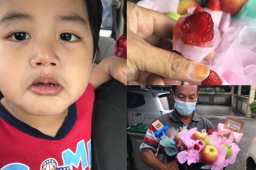 "Ni sebenarnya kali kedua saya buat bouquet strawberi, jadi dia belum biasa makan sebab tu dia beria usik.