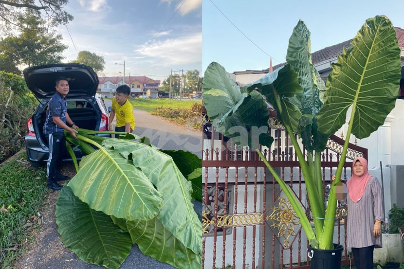 SEBATANG pokok keladi gergasi yang tumbuh berdekatan kawasan rumah dianggap unik, membuatkan seorang wanita mahu menanamnya di halaman rumah. Demi memenuhi permintaan si ibu, anak-anak menggunakan kereta untuk pergi menebang dan mengangkutnya pulang gara-gara saiznya yang besar. ARTIKEL BERKAITAN: Hujan tengah lebat, mak kerah 2 anak bantu selamatkan pokok keladi... alasannya takut lemas! Rumah dah macam mini nurseri, mujur tak pandai online banking ARTIKEL BERKAITAN: Tak kaya nak belikan tanaman kayangan, anak bawa ibu cabut pokok keladi dalam semak demi tambah koleksi - "Belum pernah jadi benda tak elok" Berkongsi pengalaman, Noor Musfirah Mukhatar berkata, kewujudan pokok keladi gergasi itu telah lama disedari oleh ibunya apabila dia sering menyiram pokok-pokok di halaman rumah. Noor Musfirah yang berusia 25 tahun itu memberitahu, pokok tersebut tumbuh di kawasan paya yang terletak bersebelahan dengan rumah keluarganya di Bukit Payong di Marang, Terengganu. View this post on Instagram A post shared by mStar (@mstaronlineofficial) "Sekarang ni trend tanam pokok keladi dan mak pun berjinak-jinak tanam juga sebatang dua di halaman rumah. Dekat kawasan paya tu memang ada banyak pokok keladi. "Mak kata ada satu pokok keladi tu cukup unik, dari jauh boleh nampak. Tapi terfikir macam mana nak masuk sebab kawasan paya dan ada semak samun," katanya kepada mStar. Suami (kanan) dan adik lelaki Musfirah berusaha mengangkat pokok keladi dekat kawasan paya. Noor Musfirah berkata, dia bersama suami dan adik lelaki mengambil keputusan untuk menaiki kereta ke seberang kawasan paya sejauh kira-kira 200 meter dari rumah. "Walaupun paya tu sebelah rumah je, tapi nak ke tempat banyak pokok keladi tu kena pergi ke seberang. Tugas saya memandu kereta, manakala suami dan adik lelaki pergi menebang. "Mereka bawa pisau dan cangkul. Masing-masing pakai but sebagai langkah keselamatan sebab semak boleh cecah paras pinggang, risau ada ular atau binatang berbisa lain," katanya yang turut membawa anak lelaki berusia tiga tahun. Adik lelaki Musfirah memegang pokok keladi ketika menaiki Myvi. Ibu kepada dua anak itu bagaimanapun tidak menyangka pokok keladi itu setelah ditebang sebenarnya jauh lebih besar dari apa yang dilihat dari rumah mereka. "Tingginya hampir dua meter, besar sangat dan daunnya cukup cantik. Tapi masalahnya tak muat pula nak bawa balik masa kami datang dengan Honda Jazz. Bila pokok keladi besar tu sampai di rumah, mak terkejut tak sangka saiznya lagi besar depan mata. Tinggi mak je separuh pokok NOOR MUSFIRAH MUKHATAR "Kami patah balik ke rumah, dan mak offer guna kereta Myvi dia. Kami kembali ke kawasan paya tu dan dapat bawa masuk pokok tu separuh. "Nasib baiklah tu jalan di kawasan perumahan, tak sesibuk mana. Cuma orang yang lalu-lalang pandang macam pelik sebab separuh pokok yang dipegang adik terkeluar dari kereta... saya bawa kereta pun perlahan-lahan," katanya. Dua pokok keladi berlainan saiz untuk ibu tercinta. Musfirah yang bertugas sebagai jururawat menyifatkan pengalaman untuk membawa pokok keladi gergasi bersama sebatang lagi pokok keladi bersaiz lebih kecil begitu mencabar. "Bukan setakat besar, tapi berat juga sampai kena pakai kudrat dua lelaki. Nak heret dengan berjalan kaki ke rumah memang tak dapatlah. Mujur ada Myvi," tambahnya. Foto kiri suami Musfirah bersebelah dengan pokok keladi, kanan Musfirah (kiri) bersama anak (tengah) dan kakak. Dalam pada itu, Musfirah berkata, ibunya sebelum ini pernah mempunyai anak pokok keladi dan pernah mencampakkanya ke kawasan paya sebelah rumah ketika proses pembersihan. "Dah bertahun-tahun, tapi tak pasti anak pokok keladi tu membesar ke tak. Mak memang suka berkebun, ada beberapa jenis tanaman sayur selain pokok betik dan pokok pisang. "Bila pokok keladi besar tu sampai di rumah, mak terkejut tak sangka saiznya lagi besar depan mata. Tinggi mak je separuh pokok. "Mak excited sangat. Alhamdulillah dapat juga kami penuhi request mak walaupun pokok tu berat sangat sampai suami sakit pinggang selepas mengangkat," ujarnya secara berseloroh. Dapatkan info dengan mudah dan pantas! Join grup Telegram mStar DI SINI
