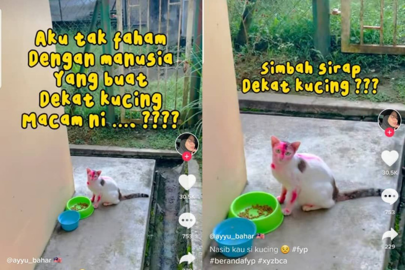 "Aku tak faham dengan manusia yang buat kucing macam ni? Simbah sirap dekat kucing? What the?!" tulis di media sosialnya.