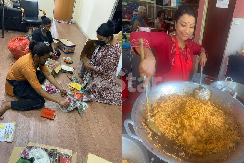 Kalavathy (dua, kanan) bersama sukarelawan menyiapkan makanan.