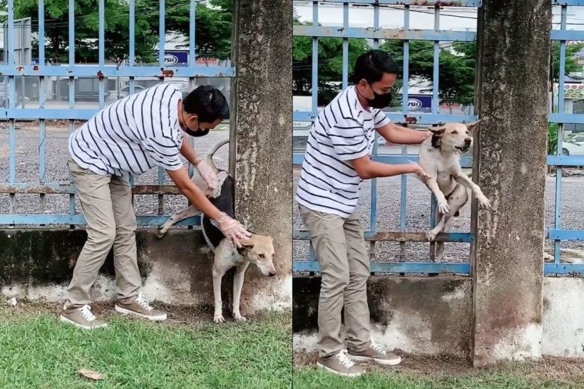 "Kemudian ketika dalam perjalanan nak balik rumah, baru saya perasan. Rupa-rupanya kaki anjing itu tersepit pada pagar. Saya tengok anjing tu sedang meraung. Saya cuba cari sarung tangan dalam kereta, tapi tiada.