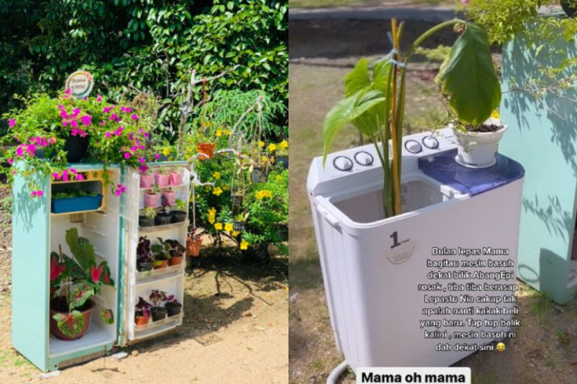 TAK ada pasu? Itu bukanlah satu masalah besar bagi seorang wanita yang memilih untuk menanam pokok keladi kesayangannya di dalam sebuah mesin basuh. Bukan itu sahaja, wanita kreatif ini, Faridah Wahab, 57, turut menjadikan peti sejuk pemberian arwah suaminya sebagai tempat letak bunga.ARTIKEL BERKAITAN : Aduh, kantoi pula! Ada niat tak baik di kolam renang, pemuda ‘terciduk’ dengar jawapan balas wanita pandai cakap MandarinARTIKEL BERKAITAN : “Nak juga beg Gucci macam papa” - Murid bergaya bawa beg mahal ke sekolah selepas alasan diterima mak ayah! Berkongsi hasil kerja ibunya di laman sosial media, Nia Syaqiera Sabri, 28 berkata, Faridah mula bercucuk tanam sejak tahun 2019. Namun, katanya, ibunya itu mula mengambil pendekatan yang lebih kreatif apabila menyertai pertandingan laman terindah sewaktu tempoh Perintah Kawalan Pergerakan (PKP) sebelum ini. View this post on Instagram A post shared by mStar (@mstaronlineofficial) "Syarat pertandingan antara kampung tu adalah kena jadi kreatif, maka dari situ Nia dan mama terfikir nak guna peti sejuk yang lama," katanya yang menetap di Pulai Chondong, Machang, Kelantan. Walaupun sudah rosak, peti tersebut, kata Nia mempunyai nilainya yang tersendiri buat ibunya. "Peti sejuk tu dah lama sangat, arwah abah belikan untuk mama jadi mama tak sampai hati nak jual pada lori besi buruk yang selalu minta nak beli, mama simpan je walaupun dah rosak. "Sebelum ni terbengkalai je di sebelah rumah, kemudian kami ambil dan jadikan tempat simpan bunga. "Mungkin asbab peti ni juga mama dapat nombor satu dalam pertandingan tu," katanya. Faridah menang tempat pertama dalam satu pertandingan laman paling kreatif yang disertainya. Mengakui bahawa dia menyertai pertandingan itu untuk suka-suka, Nia bagaimanapun mendedahkan bahawa ibunya itu tetap tak senang duduk selagi keputusan belum keluar. "Pertandingan tu menang dapat duit je, tak pasti berapa tapi Nia ada cakap dekat dia sebelum join hari tu... mama kalau nak duit mama beritahu la, tapi dia jawab ma nak suka-suka je, tak menang tak apa. "Tapi agak tak boleh tidur juga dia asyik fikir menang ke tak," seloroh Nia yang merupakan pengasas jenama Rohina. Faridah mula menanam sejak tahun 2019. Tidak cukup dengan peti, Faridah turut menggunakan mesin basuh mereka yang rosak sebagai pasu bunga. "Mesin basuh tu rosak bulan lepas, mama mengadu cakap keluar asap dari mesin basuh. "Bila Nia balik rumah tengok dia letak pokok, Nia usik mama, ke mama yang rosakkan mesin basuh ni sebenarnya, sebab nak letak pokok? "Ibu jawab, mung (kamu) ni, bukan la!" cerita Nia.Dapatkan info dengan mudah dan pantas! Join grup Telegram mStar DI SINI