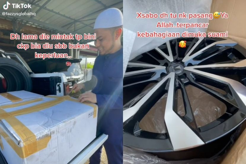 MEMBAHAGIAKAN pasangan merupakan antara perkara yang sangat penting dalam melayari bahtera kehidupan berumah tangga. Namun peranan untuk membahagiakan pasangan ini tidak hanya terletak pada suami, sebaliknya isteri juga perlu memainkan tanggungjawabnya. ARTIKEL BERKAITAN: Habislah ibu dah kantoi! Anak 5 tahun suka bergosip dengan bapa, hantar report emaknya main TikTok dalam selimut ARTIKEL BERKAITAN: “Pekak ke apa kau ni?” - Selamba kongsi video tengking pekerja McD ketika drive-thru, lelaki ini teruk dikecam View this post on Instagram A post shared by mStar (@mstaronlineofficial) Perkongsian seorang wanita yang sanggup berbelanja besar untuk memberi hadiah kejutan buat pasangannya baru-baru ini mendapat pujian daripada rata-rata netizen. "Perh boleh tahan harga Modellista (jenama aksesori untuk Toyota Vellfire) ni sis," tulis seorang warga maya. Bercakap kepada mStar, wanita berkenaan, Azie Fazamilla Awi, 33, berkata, empat rim kereta tersebut dibelinya sebaik sahaja pulang daripada mengerjakan ibadah umrah pada 4 Januari lalu. Jelasnya, suaminya, Fakhruddin Zulkifli, 36, pernah berberapa kali menyuarakan keinginan untuk memiliki rim kereta baharu, namun dia sanggup mengetepikan kehendaknya demi keluarga. "Suami ada cakap nak tukar rim terus alang-alang tayar semua dah haus, saya cakap biar dulu sebab rim bukan keperluan, dari beli rim baik kita pergi ke Makkah buat umrah. Jadi dia pun reda dan buat keputusan untuk kami berdua mengerjakan umrah sekali dengan ma dan abah. "Tapi lepas balik umrah masa kuarantin tu hari-hari dia tengok gambar rim dekat Facebook, kalau saya duduk di sebelahnya dia akan buka gambar rim tu depan saya. Suami memang macam tu kalau nak apa-apa dia akan tunjuk dan buka gambar atau video depan isteri untuk beritahu keinginan dia. "Jadi kita sebagai isteri ni kena faham-faham la," katanya. Azie bersama suami dan anaknya. Azie yang juga seorang peniaga berkata, dia kemudiannya secara senyap-senyap menghubungi kedai rim kereta tersebut dan menguruskan supaya rim tersebut dihantar terus ke rumah mereka di Gong Badak, Kuala Terengganu. "Masa barang sampai tu dia memang teruja sangat, ye la rim idaman dia kot, tak berhenti-henti dia ucap terima kasih sebab dari dia main K-car dulu lagi saya sentiasa sokong dia dan beli barang untuk kereta dia," katanya. Rim kereta yang dibelikan Azie buat suaminya. Enggan mendedahkan harga rim kereta tersebut, Azie berkata dia mengambil masa sekitar dua bulan lebih untuk membelikan rim buat suaminya. "Suami saya seorang yang terlalu memahami keinginan isteri, dia seorang suami yang tak pernah berkira untuk beli keinginan anak dan isteri, selalu dahulukan isteri untuk apa sahaja. "Banyak dia berkorban untuk isteri dia. "Jadi bila tengok suami gembira, kita dah cukup bahagia sebab dapat tunaikan keinginan dia," kata Azie yang mempunyai seorang cahaya mata. Dapatkan info dengan mudah dan pantas! Join grup Telegram mStar DI SINI