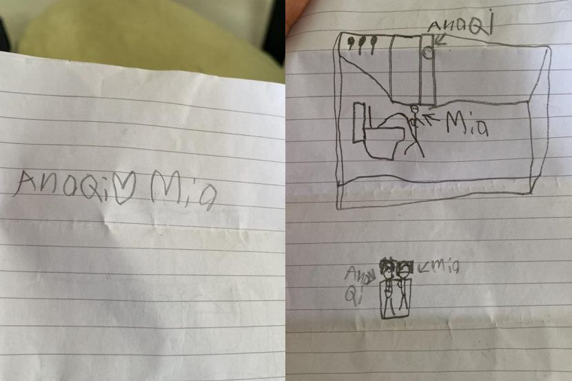 "Mia beritahu 'mummy, kakak dapat surat daripada Anaqi'. Saya terus tanya 'Anaqi satu kelas dengan kakak?'. Dia angguk, kemudian terus cakap Anaqi pesan jangan bagitahu mummy dan buka bila sampai rumah.