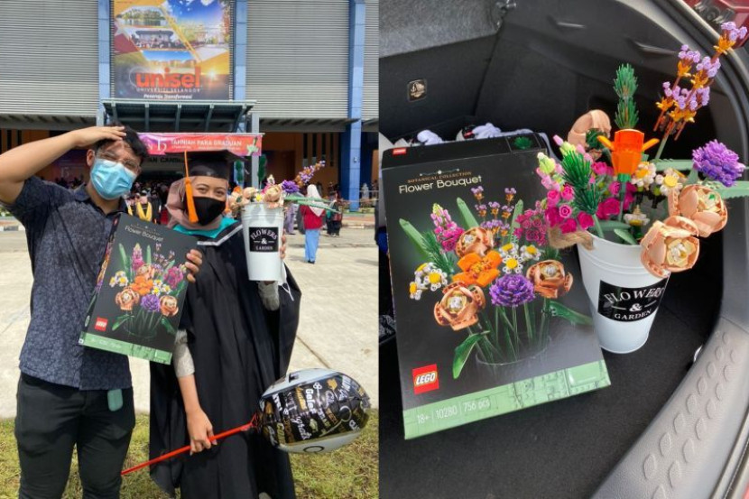 PEMBERIAN jambangan bunga menjadi simbolik ucapan tahniah setiap kali tibanya musim graduasi pelajar universiti. Namun lain pula ceritanya melibatkan jejaka ini apabila dia bersengkang mata menghasilkan bunga daripada ratusan kepingan Lego, khusus buat teman wanitanya. Menurut Syed Amirul Haziq Syed Mohd Tahir, 22, bunga lego itu dibuat khas bagi meraikan kejayaan Siti Aisyah Humaira Ahmad Helmi, 23, yang menamatkan pengajian dalam bidang Pengajaran Bahasa Inggeris sebagai Bahasa Kedua (TESL) di Universiti Selangor (Unisel) pada 6 Februari lalu. ARTIKEL BERKAITAN: Tak mampu nak beli, anak sebak tengok ibu gigih gubah sendiri jambangan bunga untuk diberi masa konvo... setiap masa periksa bimbang layu! ARTIKEL BERKAITAN: Bapa tanya nak bunga masa konvo, pemuda ini kata datang pun dah cukup, “Tengok abah depan mata, terubat kerinduan pada arwah mak” Dia yang mesra disapa Amirul mengakui proses penghasilan bunga itu tidak semudah yang disangka, namun berpuas hati apabila melihat hasilnya selepas ia berjaya disempurnakan. View this post on Instagram A post shared by mStar (@mstaronlineofficial) "Dulu saya pernah bagi dia bunga segar, tapi ia cepat mati. Jadi, saya buat keputusan untuk beli bunga Lego. Ibaratnya, tak perlu beli bunga dah lepas ni. Memang mekar sepanjang masa. "Saya dapat inspirasi untuk bagi bunga Lego selepas tengok video di TikTok dan Twitter. Jadi saya beli dengar harga RM219 dan saya pasangkan sendiri semuanya. "Saya fikir ia mudah dan boleh dibuat dengan cepat, tapi akhirnya saya yang 'terciduk' pada malam sebelum hari konvo. Dalam lima ke enam jam proses, sampai pagi tak siap semuanya. Video yang dikongsi di TikTok miliknya. "Saya sambung buat bunga Lego ketika acara konvo sedang berlangsung. Saya silap plan, sepatutnya saya buat lebih awal. Tapi akhirnya ia berjaya disiapkan juga. Rasa macam bunga saya yang paling rare kat Unisel hari tu," ujarnya berseloroh. Amirul yang juga penuntut bidang Sains Sukan di Kolej Universiti Tunku Abdul Rahman, Kuala Lumpur turut membuat rakaman video memaparkan penghasilan serta pemberian bunga berkenaan. Saya kata, susah dia nak kalahkan hadiah (bunga lego) yang saya dah bagi. Dia pun buntu. AMIRUL Tanpa disangka-sangka, video itu meraih lebih 350,000 tontonan selepas ia dikongsi ke aplikasi TikTok. Menurut Amirul, dia juga dibanjiri banyak komen netizen, khususnya yang bertanya mengenai bunga tersebut. "Awalnya saya tengok sambutan video tu biasa-biasa saja. Kemudian tiba-tiba masuk banyak notification, komen pun banyak. Teman wanita Amirul yang diraikan dalam majlis konvo pada 6 Februari lalu. "Rata-rata netizen bertanya mengenai bunga Lego. Mereka nak tahu saya beli di mana, berapa harganya," ujarnya lagi. Menurut Amirul yang masih mempunyai baki setahun pengajian, dia tidak sabar untuk menamatkan pengajian dan menghadiri majlis graduasinya suatu hari nanti. Ujar Amirul berseloroh, dia tidak mengharapkan hadiah bunga ketika hari graduasinya, namun berbesar hati jika menerima peralatan gim atau pakaian sukan. Pasangan ini berkenalan sekitar 10 tahun lalu. "Saya pun tak tahu saya nak apa kalau konvo suatu hari nanti. Saya ada sembang dengan teman wanita saya. Saya kata, susah dia nak kalahkan hadiah (bunga lego) yang saya dah bagi. Dia pun buntu. "Tapi paling senang bagi saya, bagi barangan gim. Kasut, baju atau aksesori untuk gim, itu paling mudah untuk saya," ujarnya lagi. Dedah Amirul, dia dan gadis itu sudah berkenalan sejak 10 tahun lalu ketika di sekolah menengah, namum baru sahaja bercinta sekitar empat tahun lalu. Dapatkan info dengan mudah dan pantas! Join grup Telegram mStar DI SINI