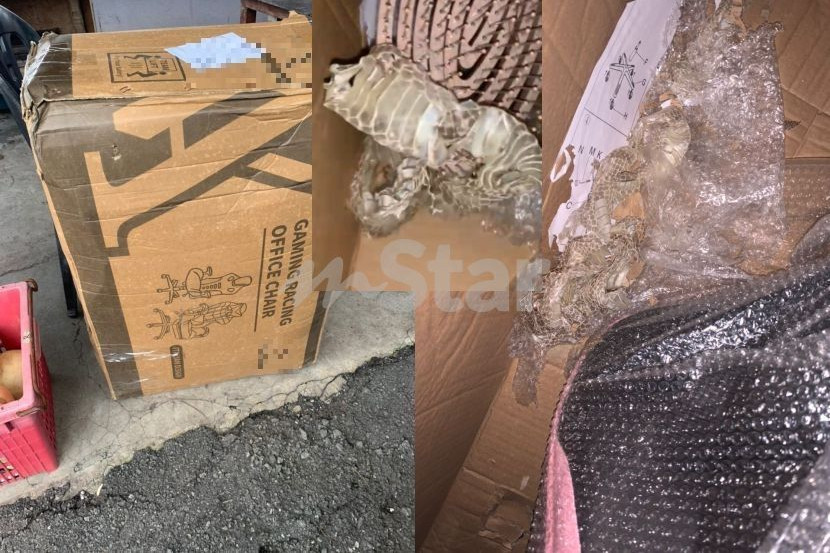 Eykin yang bekerja di Kluang, Johor berkata, dia menyedari terdapat kesan koyak seperti berlubang di bahagian bucu kotak barangan sewaktu hendak menyimpannya di dalam kereta.