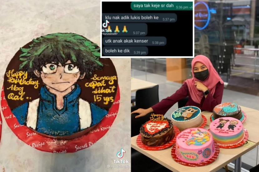 "Saya dapat mesej daripada seorang wanita yang mahu saya buat dekorasi watak anime untuk kek hari jadi anak lelakinya. Dia mesej Khamis baru-baru ini, dan beritahu majlis hari jadi anaknya jatuh hari Sabtu.
