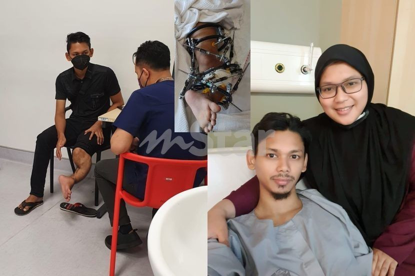 KEADAAN kaki kiri seorang lelaki yang kelihatan 'terbalik' dan dicucuk besi seperti menjalani pembedahan ternyata menggemparkan ramai.