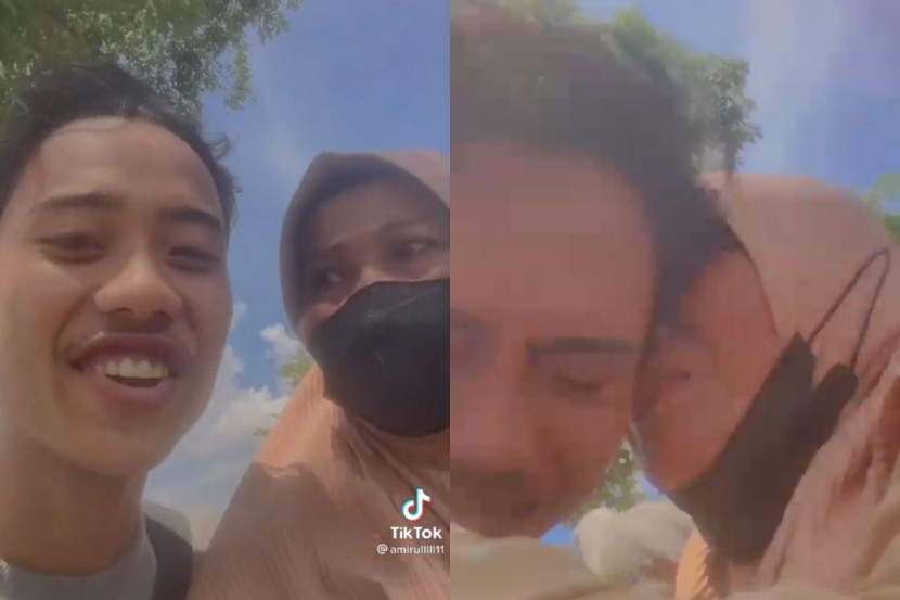 Menerusi perkongsian di TikTok, Amirul dilihat menyapa ibunya daripada belakang sebagai kejutan kepada wanita berkenaan.