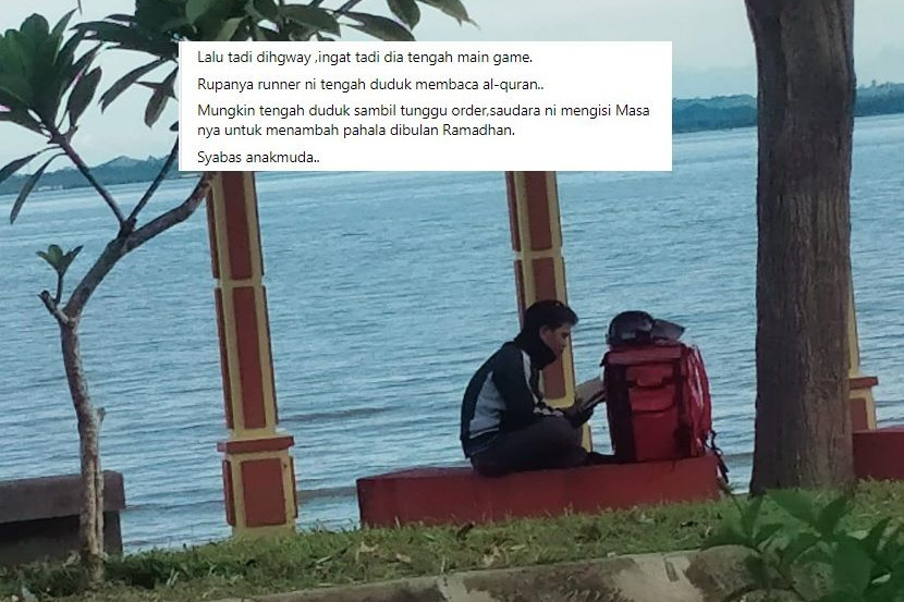 UMAT Islam sememangnya digalakkan untuk mempertingkatkan amalan ketika di bulan Ramadan. Ramai yang berlumba-lumba mengisi masa lapang dengan melakukan pelbagai ibadah sunat demi memperoleh pahala berlipat kali ganda, termasuklah pemuda dari Tawau, Sabah ini. Dalam kesibukan tugasnya sebagai seorang penghantar makanan atau rider, dia masih meluangkan masanya dengan membaca al-Quran sementara menunggu pesanan. ARTIKEL BERKAITAN: Baca Quran dalam restoran fast food ketika kelas mengajinya ada masalah, satu persatu kebaikan rider ini terbongkar ARTIKEL BERKAITAN: Tiba-tiba pasang tripod, ingatkan video call dengan keluarga... rupa-rupanya rider mengaji! – “Rasanya Ustaz Yusuf nama dia” Tanpa disedari, amalannya itu dirakam oleh seorang pengguna jalan raya yang kebetulan melalui jalan berhampiran kawasan rekreasi di Taman Traulsen, Tawau, Sabah, baru-baru ini. "Lalu tadi di highway, ingatkan dia tengah main game. Rupa-rupanya runner ni tengah duduk membaca al-Quran. Mungkin tengah duduk sambil tunggu order. "Saudara ni mengisi masanya untuk menambah pahala di bulan Ramadan, syabas anak muda," tulis Ismail Sabran Ancok yang membuat perkongsian di laman Facebook miliknya. Ismail (berbaju biru) bermurah hati menawarkan 'ganjaran' kepada rider berkenaan. Berkongsi cerita dengan mStar, Ismail berkata dia terserempak pemuda tersebut sewaktu dalam perjalanan pulang ke rumah selepas membeli makanan untuk berbuka puasa di bandar Tawau. "Pertama kali saya nampak pemuda membaca al-Quran di situ. Biasanya orang bersukan, berjoging, lepak santai," ujar Ismail yang merupakan seorang kontraktor binaan dan pemilik gerai makanan. Gerai Abang Ancok milik Ismail terletak di Downtown Tawau. Ujar lelaki berusia 35 tahun ini, dia begitu mengagumi rider berkenaan lantas membuat perkongsian di Facebook, bertujuan untuk 'menjejaki' tuan badan kerana berhasrat mahu memberikan sedikit ganjaran. "Hasil daripada kawan Facebook yang tag pemuda itu, saya sudah berhubung dengan dia untuk bertemu di gerai saya. "Saya mahu tunaikan niat untuk belanja dia berbuka puasa secara percuma sepanjang Ramadan. Dia pun gembira dengan pelawaan saya dan bersetuju dengan hati terbuka," ujar Ismail yang memiliki gerai makanan di Downtown Tawau. Moga makin ramai anak muda mengisi masa lapang dengan membaca al-Quran dalam bulan puasa. ISMAIL SABRAN Tidak menyangka perkongsiannya meraih sehingga 2,400 shares di Facebook, Ismail berharap sedikit sebanyak lebih ramai anak muda dapat mencontohi rider berkenaan. "Moga makin ramai anak muda mengisi masa lapang dengan membaca al-Quran dalam bulan puasa. Kita sedia maklum zaman sekarang anak-anak muda banyak habiskan masa dengan media sosial dan game di telefon bimbit. "Jadi kita harap dalam sibuk mencari rezeki, moga dapat meluangkan masa membaca al-Quran dan tidak semestinya pada bulan Ramadan saja tapi di hari-hari yang lain," akhirinya. Ismail berhasil menemukan rider berkenaan (gambar) hasil bantuan rakan Facebook. Sementara itu menyoroti komen netizen, rata-ratanya turut melahirkan rasa kagum dan memuji rider berkenaan. "MasyaAllah! Patut diangkat anak muda begini. "Alhamdulillah walaupun sibuk bekerja tapi masih ada masa beramal. Semoga jadi contoh kepada kita semua. "Jarang-jarang berlaku. Semoga kita boleh ikut jejaknya," demikian antara komen-komen netizen pada perkongsian tersebut. Dapatkan info dengan mudah dan pantas! Join grup Telegram mStar DI SINI