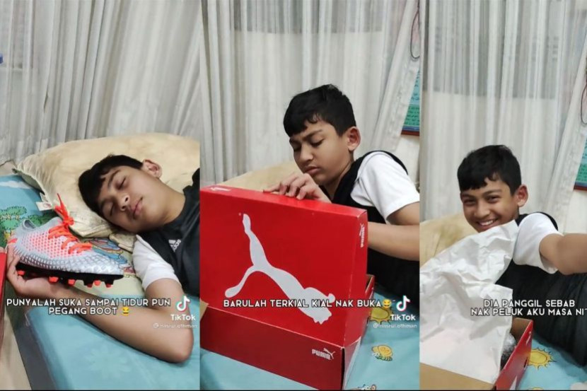 "Saya memang dah rancang nak bagi kasut bola sebelum dia masuk tahfiz. Dulu saya pun main bola, tapi tiada kasut sebab ayah bukan orang senang.