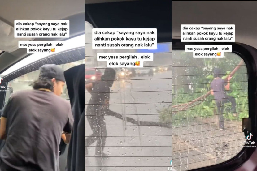 "DIA tak sweet, tapi daripada segi perbuatan dia sangat sweet," tulis seorang isteri menerusi perkongsian sebuah video tular, baru-baru ini. Rakaman tersebut menunjukkan seorang lelaki yang sanggup keluar dari keretanya, dan meredah hujan di tengah jalan bagi mengalihkan dahan pokok tumbang yang menghalang lalu lintas. Berkongsi cerita kepada mStar, isterinya, Alia Halim, memperincikan semula bagaimana suaminya sanggup basah kuyup hanya semata-mata untuk mengalihkan dahan tersebut. ARTIKEL BERKAITAN: Rider ini sanggup u-turn, gadai nyawa kutip Jalur Gemilang tersadai atas jalan kemudian pasang pada box makanan - "Kotor, koyak sikit tapi saya bangga" ARTIKEL BERKAITAN: Suami isteri sanggup gadai nyawa bantu sahabat parah kemalangan disangka pencuri, "Cepat nanti tak pasal-pasal kena langgar lori laju" "Kami baru balik dari penghantaran stok perniagaan kepada rakan niaga di TBS (Terminal Bersepadu Selatan). Lepas selesai hantar tu kami terus balik ke Rawang. Kebetulan dalam perjalanan balik tu hujan lebat. "Jalan sangat sesak waktu tu sebab dah pukul 5 petang. Orang berpusu-pusu balik kerja. Suami pun buka aplikasi Waze untuk tengok jalan mana tak sesak. Waze bawa kami lalu ke Jalan Loke Yew untuk elak traffic jam. View this post on Instagram A post shared by mStar (@mstaronlineofficial) "Masa kami dah dekat Jalan Loke Yew tu tiba-tiba nampak ada pokok tumbang dekat jalan. Mula-mula tu kami elak saja pokok tu tapi suami tanya saya boleh ke dia nak alih pokok tu sebab susah nanti orang lain nak lalu," jelas wanita yang senang disapa Alia. Wanita yang kini menetap di Rawang itu mengakui terharu dengan niat suaminya yang sanggup bersusah payah demi memudahkan pengguna jalan raya lain serta mengelakkan dari kemalangan kerana terlanggar dahan pokok yang tumbang. Alia (kanan) terharu dengan tindakan suaminya yang sanggup bersusah-payah demi keselamatan pengguna jalan raya. Mengimbas kembali, Alia berkata, dia sendiri mengakui suaminya seorang yang suka menjaga alam sekitar serta mengalihkan barang atau sampah di tengah jalan sejak perkenalan mereka sebelum mendirikan rumah tangga. Jelas Alia yang berniaga makanan sejuk beku dan katering, suaminya, Wan Muhammad Hafizuddin, 34, sentiasa berfikir untuk mendahului orang lain sebelum diri sendiri ini "Sebelum dia angkat pokok kayu tu memang trafik slow nak masuk situ sebab kereta nak elak kayu tu. Masa tu hujan lebat jadi tak ada siapa pun sanggup nak turun alihkan pokok tu. "Bila suami cakap nak alih tu, saya suruh dia berhenti tepi jalan dan nasihatkan supaya berhati-hati. Dia alihkan dahan tu seorang diri ke tepi jalan. Suami saya basah kuyup. "Sebelum ni, suami memang suka alihkan barang atas jalan atau sampah-sampah atas jalan. Sejak saya kahwin dengan dia baru saya belajar tentang menjaga alam sekitar. Dia juga selalu bagi laluan pada orang lain di simpang jalan kalau orang nak lalu kena tunggu lama," katanya. Suami Alia bertugas sebagai tukang masak. Menurut Alia, sifat suaminya yang sentiasa memikirkan untuk mendahului orang lain sebelum diri sendiri ini membuatkan dia lebih jatuh cinta dengan si suami. Berikutan video yang menjadi tular, wanita ini tidak menyangka bahawa rakaman yang hanya ingin dijadikan kenangan ini menjadi tular sehingga ramai memuji tindakan suaminya. "Sebenarnya besar pahala untuk orang yang alihkan benda menghalang jalan. Masa tu hujan lebat jadi tak ada siapa pun sanggup nak turun alihkan pokok tu. Kasihan pengguna jalan raya lain nak lalu, terutama penunggang motosikal. ALIA "Mungkin perbuatannya... asbab masuk syurga sebab memudahkan urusan dan menyelamatkan orang lain. Hebat! "Semoga brader ni sentiasa diberi kesihatan yang baik dan rezeki yang luas," komen beberapa netizen. Alia berkata, ini bukanlah kali pertama suaminya berbuat demikian, namun pada hari kejadian, dia sedang menggunakan telefon pintarnya sebelum merakam suaminya yang keluar dari kereta. Antara komen netizen. Justeru, dia berharap warganet dapat melihat sesuatu yang baik daripada video tersebut kerana percaya rakyat Malaysia begitu prihatin dan akan melakukan perkara sama dalam situasi itu. "Saya terharu bila dia sanggup nak basah kuyup tu demi orang lain. Cuma dia akan tanya saya dulu boleh ke tak nak alih, kalau saya cakap 'tak payahlah, bahaya', dia tak alih pun. "Tapi haritu sebab pokok tu dah menghalang laluan kereta. Nak tak nak kena buat atas rasa tanggungjawab. Kasihan pengguna jalan raya lain nak lalu, terutama penunggang motosikal. "Bila video tu viral, ramai yang mendoakan suami saya. Ada yang kecam kata kami berlakon, kami riyak. Saya maafkan semua yang tsalah sangka pada kami. Cuma kasihan suami sebab dia tak tahu pun saya rakam. Saya memang random rakam dekat untuk letak dekat Instastory dan di TikTok untuk suka-suka saja," kata Alia. Dapatkan info dengan mudah dan pantas! Join grup Telegram mStar DI SINI