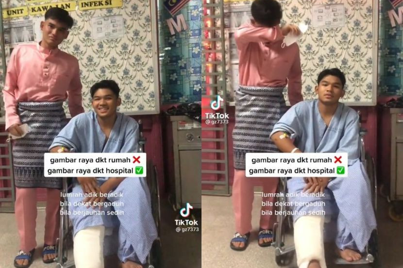 "Pertama kali raya di hospital. Apabila dekat bergaduh, jauh sedih," tulis abang sulung Ghani menerusi kapsyen TikTok.