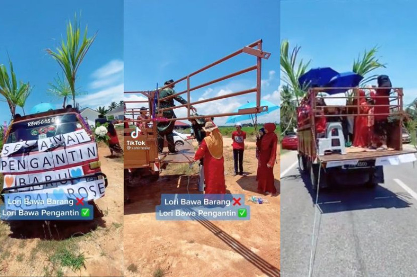 Begitu juga yang dilalui pasangan pengantin dari Tanjung Piandang, Perak baru-baru ini apabila mereka memilih berarak menggunakan lori kecil.