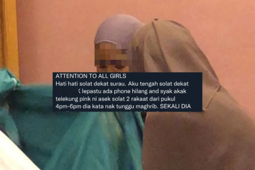 "Sebelum saya mulakan solat, saya sempat dengar 'perempuan bertelekung pink' ni kena marah dengan pihak pengurusan. 'Kau ada tinggal barang lain lagi tak?. Bila suspek jawab 'tak ada!' dengan nada marah baru keluar suara jantan.