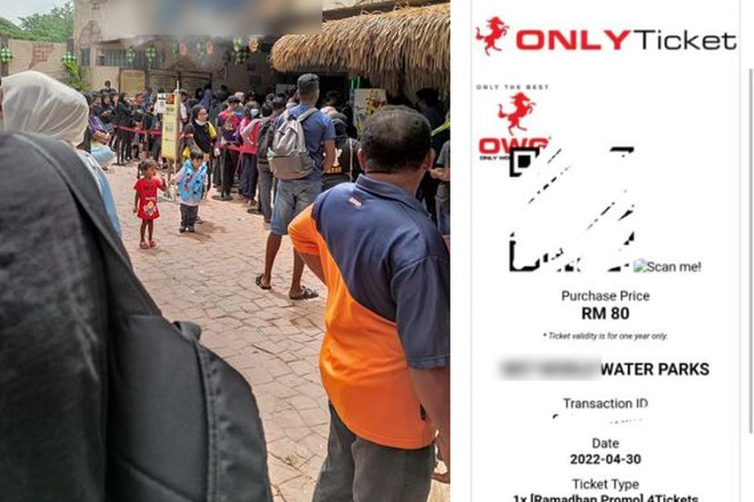 Seperti yang dialami Camin Rozlan, dia dan keluarga terpaksa beratur panjang walaupun sudah membeli tiket masuk secara dalam talian.
