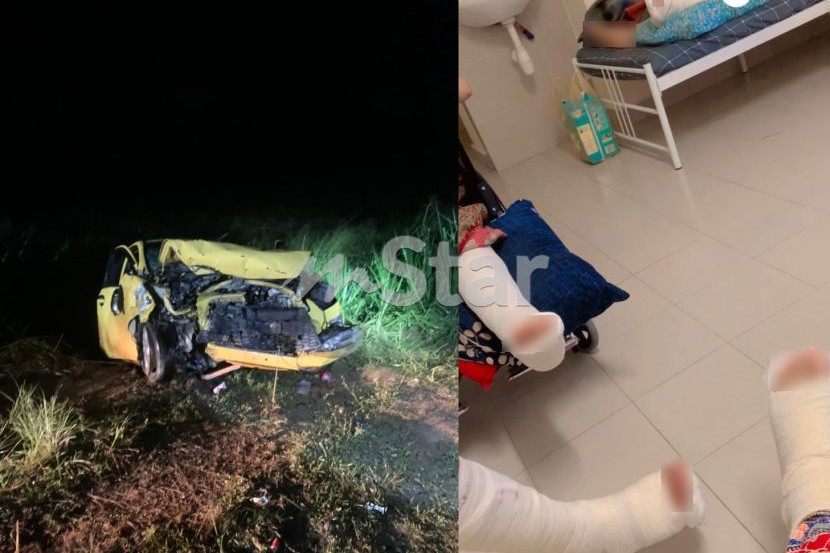 "Kakak yang duduk di kerusi penumpang hadapan, patah kaki kanan dan terpaksa dimasukkan besi. Sementara itu abang yang memandu pula, kaki kanannya retak selain kepalanya luka," ujar Ain.