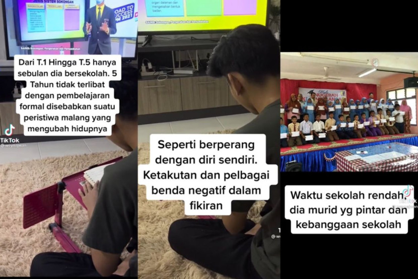 “Tiap-tiap hari dia akan menonton platform pembelajaran seperti YouTube, DidikTV dan sebagainya. Dia cuma belajar bersendirian berbekalkan nota dan buku-buku yang ada.