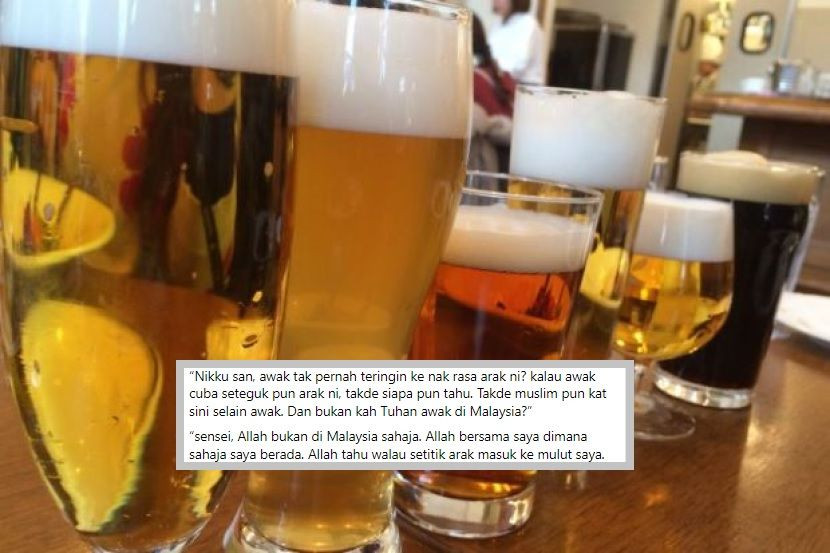 "Sensei pernah tanya 'awak tak pernah teringin ke nak rasa arak ni? Kalau awak cuba seteguk pun arak ni, tak ada siapa pun tahu. Tak ada muslim pun dekat sini selain awak. Dan bukankah Tuhan awak di Malaysia?," ceritanya lagi.