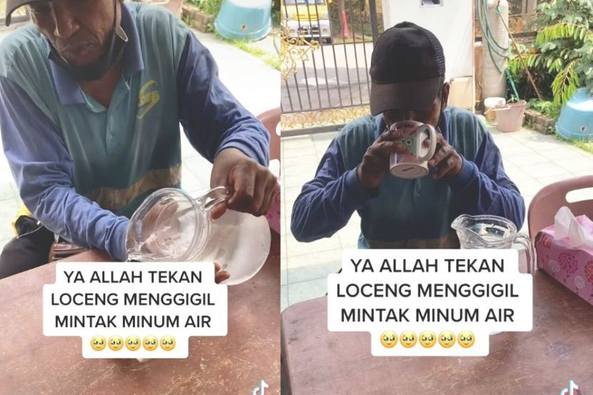 Berdasarkan video yang dikongsikan di TikTok milik Muhd Shahirdin, lelaki berusia dalam lingkungan 50-an itu kelihatan sangat dahaga saat meneguk air kosong yang sejuk ketika diberikan kepadanya.