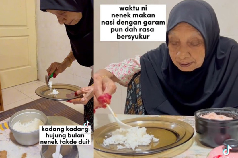 'KADANG-kadang hujung bulan nenek tak ada duit.' Kapsyen tersebut ditulis pada video menunjukkan seorang warga emas yang makan nasi berlaukkan garam dan adegan itu ternyata mengundang sebak netizen. Namun setelah nenek berkenaan mengangkat air minuman jenama mahal, Starbucks yang diletakkan di sebelahnya ramai yang berasa tertipu dengan rakaman tersebut kerana menyangka warga emas itu benar-benar terpaksa ikat perut ketika hujung bulan. View this post on Instagram A post shared by mStar (@mstaronlineofficial) Menurut cucunya, Nadia, 27, rakaman tersebut sememangnya dibuat bertujuan untuk gurauan di TikTok dan ia adalah ideanya bersama tiga adik beradik lain, yang mana nenek mereka, Rafiah Piee, 86, menjadi 'pelakon'. Bercerita kepada mStar, Nadia berkata rakaman dibuat pada malam minggu sempena hari perkahwinannya yang berlangsung pada 23 Julai lalu. “Kami empat beradik yang rancang nak buat video ni. Rasanya adik saya, Azim ada tertengok satu trend dekat TikTok jadi dia ajak buat dengan Pah (panggilan nenek). ARTIKEL BERKAITAN: Sedih, marah, kelakar! Sehari lebih 10 kali ajak, anak-anak terpaksa pura-pura bawa bapa nyanyuk 'balik kampung'... apa yang berlaku selepas itu memang puas hati ARTIKEL BERKAITAN: Pemuda menangis di sebalik kostum Mickey Mouse lihat sahabat terpisah 25 tahun depan mata - “Nenek Raja bantai kami dengan getah paip” “Idea makan nasi, garam dicampurkan air suam tu memang makanan nenek waktu kecil. Katanya sedap makan macam tu. “Nenek suka bercerita pada kami cucu-cucunya kisah hidup susah zaman Jepun makan ubi kayu. Nasi, garam dan air ni nenek pernah ajar masa kami masih kanak-kanak. Walaupun ada makanan lain tapi makan macam tu pun Pah kata sebenarnya dah cukup dan mengenyangkan,” ujarnya. Nadia yang merupakan anak kedua dari empat adik beradik berkata, ini bukanlah kali pertama neneknya bersetuju untuk terlibat dalam rakaman video lucu. Majlis sanding Nadia pada Sabtu. Malah, neneknya juga sangat gembira dan teruja apabila diajak oleh cucu-cucunya membantu memberi sumbangan untuk menghasilkan kandungan di TikTok. “Sebenarnya nenek kalau cucu-cucunya minta terlibat dalam video macam tu, dia suka je nak buat. Kalau tengok profil TikTok saya sebelum ni ada dua post yang saya pin melibatkan nenek saya... viral juga. Nenek hanya mengikut arahan cucu-cucunya untuk menghasilkan video TikTok. “Bila kami berkumpul adik-beradik, memang akan buat video. Nenek pun tidak menolak, malahan dia suka cucu-cucu menyakat dan bergurau dengan dia. “Part guna beras basmati dan garam tu, kami guna saja barang dan makanan yang ada kat rumah. Tak ada perli siapa-siapa, sebab kami sekadar buat video suka-suka,” jelas Nadia yang menetap di Cyberjaya. Berbeza dengan orang zaman dahulu yang kurang gemar makan snek atau makanan ringan, berbeza pula dengan neneknya yang memang menggemari makanan tersebut. Apa yang cucu dia beli, nenek memang akan makan atau minum. Dia tak macam orang tua yang lain, mi maggi, air jenama Starbucks, piza... semua tu dia makan. NADIA Bagaimanapun menurut Nadia, neneknya tetap makan makanan menyihatkan yang membuatkan dirinya masih kuat dan sihat pada usianya yang hampir mencecah 90 tahun. Selain air Starbucks, gelang emas di pergelangan tangan nenek turut menjadi perhatian warga maya setelah video itu menjadi tular. “Apa yang cucu dia beli, nenek memang akan makan atau minum. Dia tak macam orang tua lain, mi maggi, air jenama Starbucks, piza... semua tu dia makan. Dia suka juga minum kopi Che Nah. Setiap kali kami ke kedai, dia akan kirim untuk beli kopi tersebut. Nenek sudah berusia 86 tahun. “Rahsia kesihatan fizikal nenek, walaupun minum dan makan fast food nenek amalkan makan ulam-ulaman dan sayuran. “Walaupun sekarang nenek duduk dengan kami sejak atuk dah lama tak ada, dia masih aktif buat kerja-kerja rumah walaupun kami larang tapi dia tak boleh duduk diam. Komen netizen di TikTok. “Pasal gelang emas tu... memang dia suka pakai. Selalu juga dia tanya harga emas semasa berapa ringgit. Dia akan kumpul duit yang diberi anak cucu dan akan mengajak saya membeli emas,” jelas Nadia. Untuk rekod, video yang dimuat naik oleh Nadia telah meraih lebih 5.6 juta jumlah tontonan di TikTok. Rata-rata netizen terhibur dengan keletah yang ditunjukkan oleh warga emas itu yang berjaya mencuit hati mereka. "Tak jadi aku nak sedih. "Hampir nak contact Bersamamu tadi. Nasib tengok sampai habis. "Baru mengalir air mata, terus sedut balik naik. "Nenek humble, pakai gelang emas, minum Starbucks tapi santai makan nasi putih dengan garam," komen netizen di TikTok. Nadia bersama neneknya. “Alhamdulillah netizen sangat supportive mendoakan nenek sentiasa sihat dan panjang umur dan sentiasa sihat. “Malah mereka mahu melihat lagi video-video dari nenek dan meminta saya buat lebih banyak lagi lepas ni,” ujar Nad menutupi kisah nenek Pah. Dapatkan info dengan mudah dan pantas! Join grup Telegram mStar DI SINI