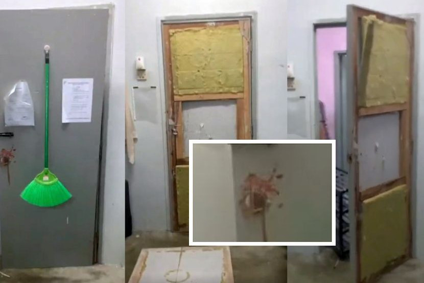 Keadaan pintu bilik selepas berjaya dipecahkan cikgu Hafiz.