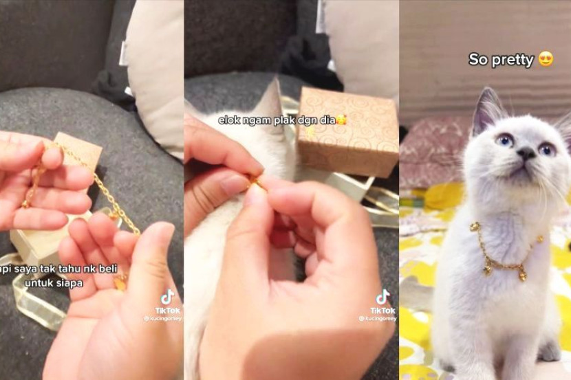 Menerusi video perkongsian yang dimuat naik, pemilik akaun TikTok @kucinggomey berkata rantai emas berkenaan dihadiahkan kepada kucing yang bernama Bino.