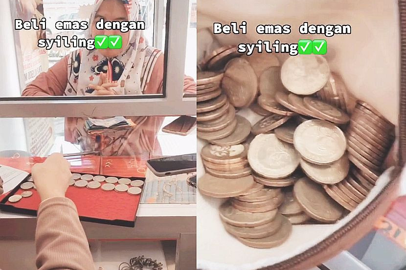 Seperti rakaman video yang tular baru-baru ini, seorang wanita dikatakan membeli sebentuk cincin emas dan gelang tangan dengan menggunakan duit syiling yang dikumpul.