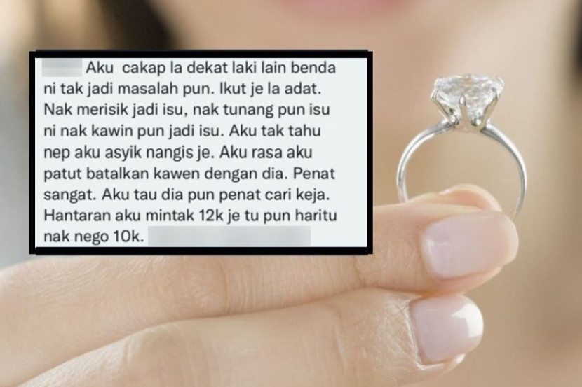 SERING kali kita mendengar perkongsian kisah mengenai betapa hebatnya dugaan ketika tempoh pertunangan. Ada yang diuji dengan pasangan yang tiba-tiba curang, tekanan kewangan, tekanan keluarga malah macam-macam lagi ujian sehingga membuatkan ikatan pertunangan terlerai sebelum sempat diijabkabul. Begitu juga halnya dengan kisah sepasang bakal pengantin ini yang bergaduh disebabkan tidak sependapat sehingga membuatkan salah seorang daripada mereka ingin membatalkan majlis pernikahan. "Aku baru saja bertunang dan bulan 12 ni kalau ikutkan kami kahwin. Jarak waktu nak kahwin tiga bulan saja. Jadi bulan ini aku senaraikan semua benda yang kami kena buat daripada selesaikan borang nikah, cari baju dan pelamin... kursus kahwin dan sebagainya. "Mak aku dah bisinglah suruh settle cepat-cepat sebab nak buat majlis ni bukan boleh ambil mudah. Jadi bila aku cakap dekat tunang aku dan kasi list dekat dia, dia cakap aku ni kelam kabut. Persiapan majlis perkahwinan masih belum dilakukan meskipun hanya berbaki tiga bulan. Gambar hiasan "Dia kata semua nak buat bulan ni macam tak ada Oktober, November dan Disember," cerita wanita berkenaan yang meluahkah kisahnya menerusi Direct Message (DM) di Twitter dan dikongsikan di akaun @brgsjks. ARTIKEL BERKAITAN: Tragis! Selepas buat 2 kerja kumpul duit hantaran, GF minta putus... tahu-tahu bertunang dengan laki lain guna pelamin, baju tunang dipilih bersama ARTIKEL BERKAITAN: “Setahun lebih bendasing menumpang” - Kisah pahit ketika ‘darah manis’, wanita dedah kenapa perlu elak bertunang terlalu lama Menurut wanita berkenaan, dalam tempoh yang berbaki kira-kira tiga bulan sebelum majlis nikah, segala persiapan perlu dilakukan segera lebih-lebih lagi dia dan tunangnya tidak dapat meluangkan banyak masa bersama kerana kekangan kerja masing-masing. "Sekarang ni kan aku stres tau. Kami dah la kerja tak sama, one of us kerja shift. Aku rasa give up. "Masa tunang tempoh hari pun jadi hal. Malam sebelum bertunang kami gaduh sebab dia marah aku, dia kata aku tak beritahu dia majlis tunang ni ramai. "Dia expect majlis tunang ni ada mak ayah aku dan mak saudara aku saja macam masa merisik tempoh hari. Sebab dia kata mak ayah dia tak bawa wakil. Dia tak bagi mak ayah dia bawa wakil. Aku tak pernah halang pun kalau mak ayah dia nak bawa. Mengenai hantaran tu, baik bincang dulu. Tapi saya rasa masalah sebenar adalah tunang ambil remeh untuk perkahwinan. NETIZEN "Aku dah la malam tu penat dengan buat preparation semua selepas tu kena hadap mental dengan dia. Aku tak nak jadi macam masa tunang hari tu, sebab itu aku minta settle nak kahwin ni awal," luahnya. Bukan sekadar dengan masalah tiada persefahaman untuk menguruskan majlis, wanita ini juga berkata dia dan tunangnya juga pernah bertelagah soal wang hantaran. "Hantaran aku minta RM12,000 saja, itu pun hari tu nak nego (tawar) RM10,000. Mak aku cakap budak degree cukup murah dah RM12,000. Dah macam budak habis SPM. "Dia (tunang) kata termasuk cincin, gelang, hantaran semua dia bagi dekat aku dalam RM15,000 juga. Selepas itu bila bincang bab hantaran untuk pihak lelaki, dia nak hantaran dia aku letak RM2,000. "Aku pun terkejut. Aku cakap la, ia umpama you bagi RM15,000 kemudian you ambil balik RM2,000... jadi jumlah RM13,000. Dia kata mana boleh kira macam tu. Aku jadi speechless. "Aku tak tahu, aku asyik nangis saja. Aku rasa aku patut batalkan kahwin dengan dia. Penat sangat," luahnya. Antara komen dan pandangan netizen terhadap perkongsian wanita berkenaan. Perkongsian itu sehingga kini meraih 1,285 ulang kicau. Menjengah ke ruangan komen pula, rata-rata netizen memberikan reaksi yang pelbagai namun ada di antaranya 'menyalahkan' wanita berkenaan kerana dilihat menyulitkan keadaan. "Mula-mula baca rasa kesian dekat perempuan kelam kabut nak plan tiga bulan saja. Baca sampai habis, kesiannya lelaki tu nak masuk dalam keluarga macam ni. "Memang padanlah lelaki tu marah kalau plan lain, jadi lain kan? Lepas tu, kalau kata nak letak hantara ikut degree, awak patut tahu bakal suami tahap mana. "Kita nak sunting anak dara orang kena ikut saluran yang betul. Mengenai hantaran tu, baik bincang dulu. Tapi saya rasa masalah sebenar adalah tunang ambil remeh untuk perkahwinan sebab perlu masa dan tenaga yang cukup, jadi tak burn out," demikian antara komen netizen. Dapatkan info dengan mudah dan pantas! Join grup Telegram mStar DI SINI