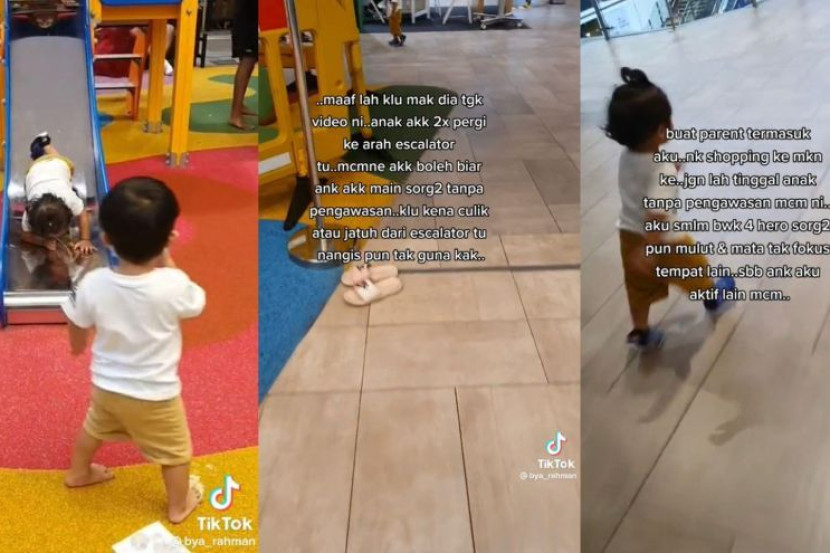 Baru-baru ini seorang wanita berkongsi video memaparkan seorang kanak-kanak lelaki dalam lingkungan usia dua tahun yang terjatuh di taman permainan indoor, gara-gara dibiarkan bermain berseorangan tanpa pengawasan.