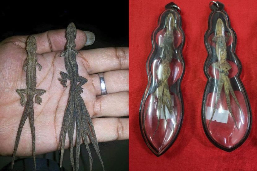 Menurut akaun Facebook Informasi Malaysia Kini, cicak ekor bercabang biasanya disimpan di dalam beg duit agar pemiliknya sentiasa mendapat keberuntungan.