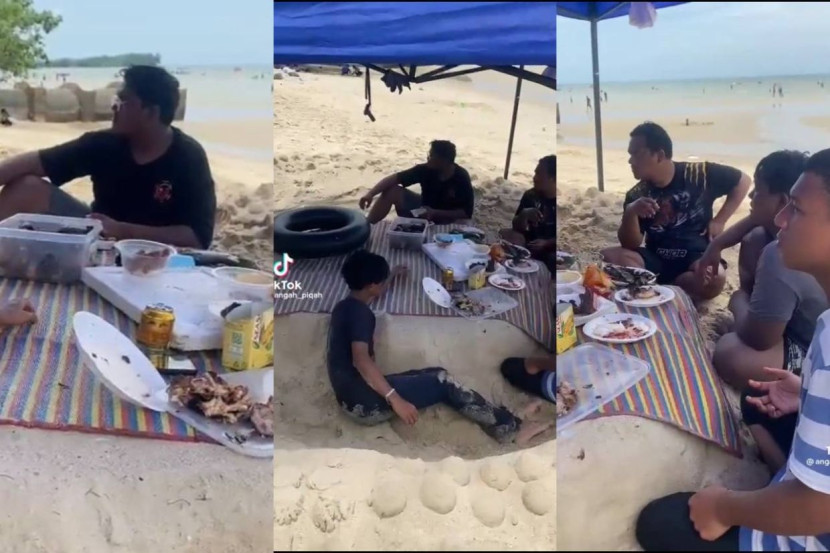 Lain pula halnya dengan sekumpulan individu, dipercayai sebuah keluarga yang begitu santai menikmati hidangan diletakkan atas meja pasir yang dibina oleh mereka sendiri di tepi pantai.
