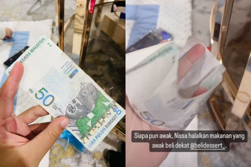 Menerusi video di muat naik di Facebook story, Nissa turut menunjukkan dengan jelas keadaan wang palsu tersebut.