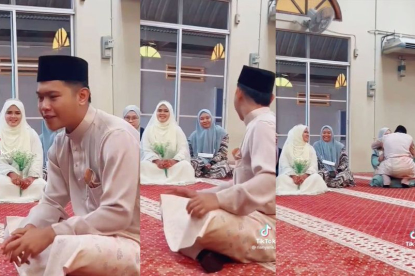 Menerusi video yang tular di laman sosial, dia yang sedang bersila di hadapan jurunikah, tiba-tiba memberi isyarat untuk menunggu sebentar, sebelum bingkas bangun dan meluru ke arah ibunya yang sedang duduk di belakang.