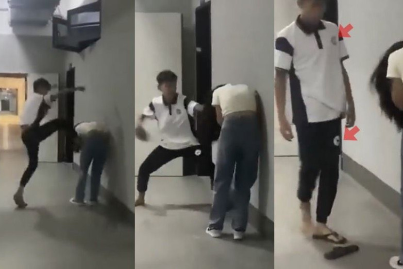 Dalam rakaman itu, mangsa bukan sahaja disepak pada muka, malah turut diterajang pada bahagian perut dan paha.