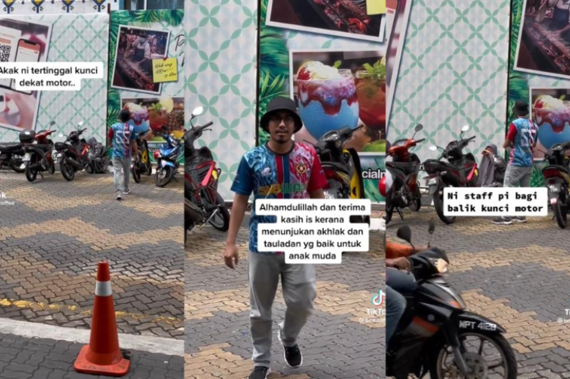 Video menunjukkan seorang pemuda, Muhammad Islah Mohd Zulhairul, 24, tular apabila dia membantu seorang wanita yang kelihatan sedang menangis kerana menyangkakan kunci motosikalnya hilang.