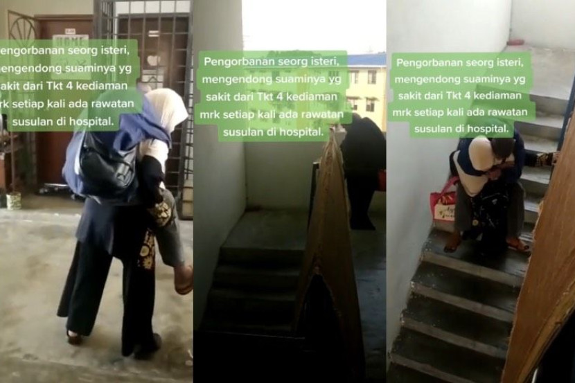 Menerusi perkongsian di TikTok dan Facebook, kegigihan dan pengorbanan Cikgu June menggendong suaminya Mazlan Othman turun dan naik dari tingkat empat rumah mereka mengundang rasa sebak dalam kalangan netizen.