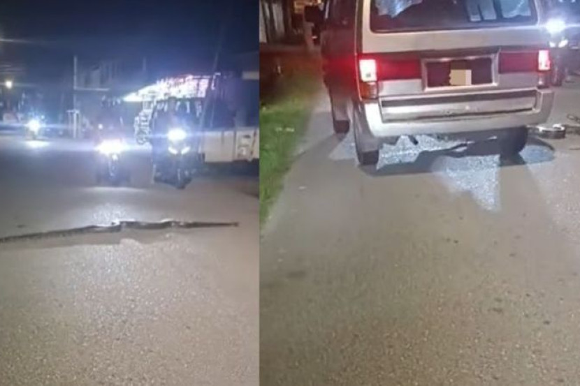 Kemudian, sebuah van pula muncul dan selamba menggilis ular berkenaan sebelum ia sempat melintas ke seberang jalan.