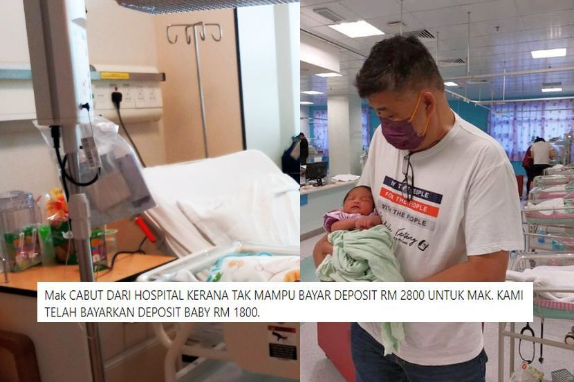 Ekoran itu, si ibu melarikan diri dari hospital kerana tidak mampu membayar deposit sejumlah RM2,800 untuk rawatan dirinya sendiri.