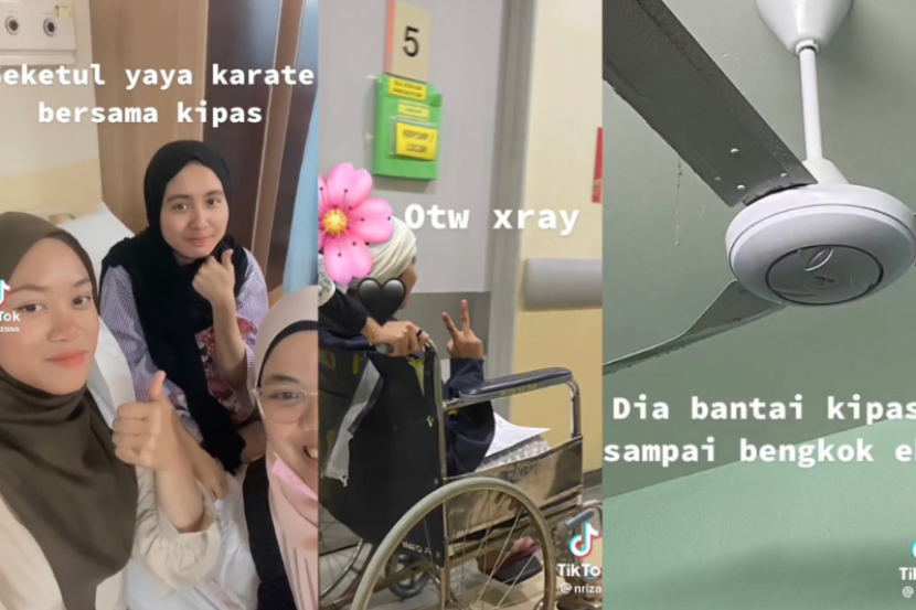 Menurut pengguna TikTok @nrizaaa, peristiwa rakan serumahnya yang dipanggil Yaya itu ‘berkarate’ dengan kipas biliknya berlaku kira-kira jam 1 pagi.