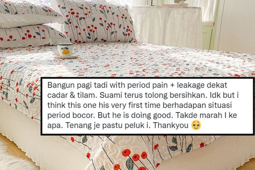 "Bangun pagi tadi with period pain and leakage dekat cadar dan tilam. Suami terus tolong bersihkan... Idk (I don't know) but I think this one his very first time berhadapan situasi period bocor.