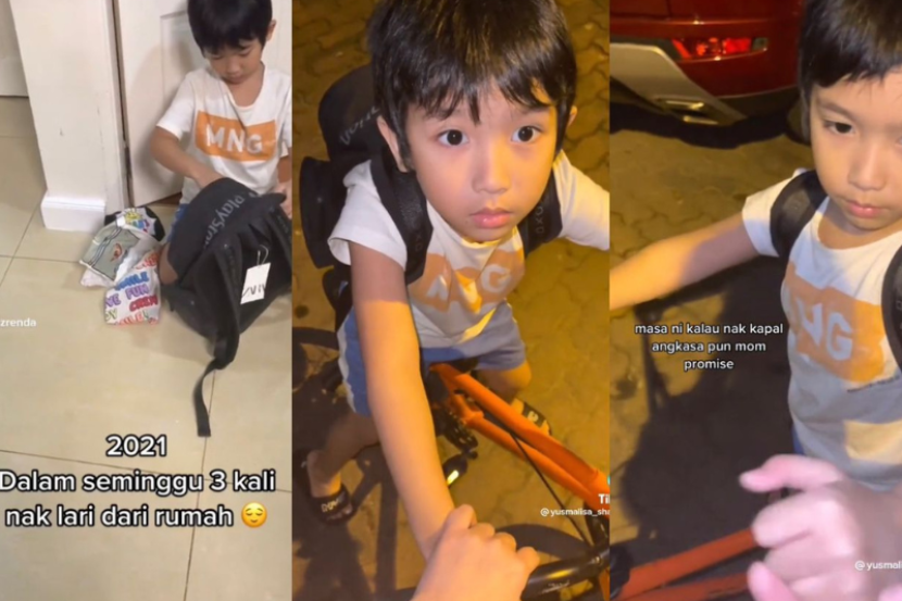 Menerusi video yang dimuat naik melalui akaun TikTok @yusmalisa_shazrenda, seorang ibu berkongsi 'drama' lucu gelagat anaknya mahu lari dari rumah yang dirakam pada 2021.