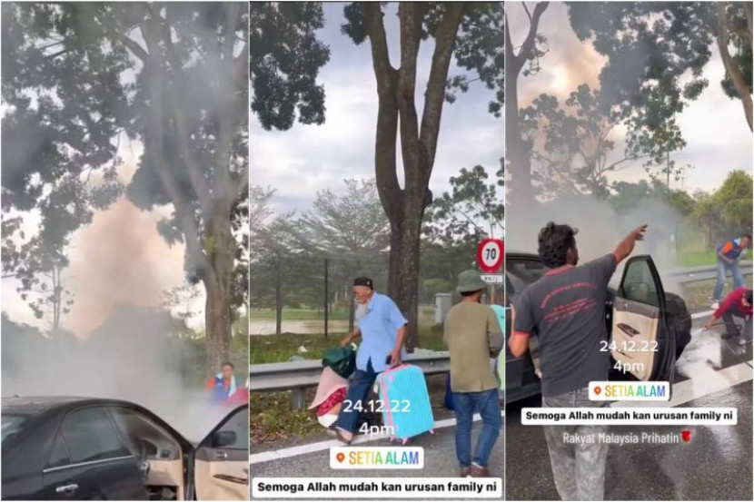 "Waktu tu saya nak balik rumah melalui jalan dekat Setia Alam, Selangor. Tiba-tiba nampak ada sebuah kereta berhenti tepi jalan dengan enjin berasap. Mula-mula saya ingat overheat biasa je, sekali api mula marak.