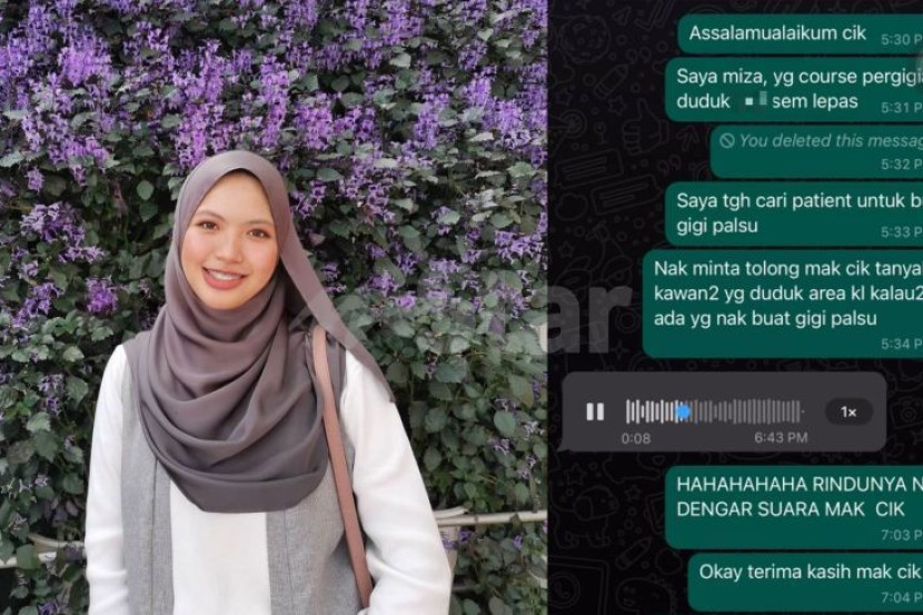 SETIAP pelajar akan berdepan dengan pelbagai tugasan demi melengkapkan pengajian mereka di peringkat universiti. Terbaharu, kisah seorang pelajar bidang Pembedahan Pergigian Universiti Malaya (UM) yang mencari sukarelawan bagi membuat rawatan gigi palsu turut mencuri perhatian ramai. Tangkap layar perbualan WhatsApp antara Nur Hamizah Daing Abd Hamid, 21, dengan seorang pengusaha kafe di universiti itu meraih lebih 200,000 tontonan selepas ia dikongsi menerusi TikTok. View this post on Instagram A post shared by mStar (@mstaronlineofficial) "Assalamualaikum cik. Saya Miza yang course pergigian. Saya tengah cari patient untuk buat gigi palsu. "Nak minta makcik tanyakan kawan-kawan yang duduk area Kuala Lumpur kalau-kalau ada yang nak buat gigi palsu," tulisnya melalui WhatsApp. Apa yang mencuri tumpuan tentunya jawapan wanita berkenaan yang dihantar menerusi pesanan suara (voice note) sehingga dia menjadi perhatian ramai netizen. Ada beberapa gigi palsu setiap student kena buat... bukan untuk seorang, tapi ramai. NUR HAMIZAH DAING ABD HAMID "Waalaikummussalam, waalaikummussalam. Pucuk dicita ulam mendatang. Memang ada orang nak buat gigi palsu. Suami makcik sendiri. "Kau nak buat praktikal ke? Boleh boleh boleh boleh. Makcik suruh pakcik buat gigi palsu tu. Kau yang tolong buatkan kan? Haa no hal makcik percayakan kau. "Bila nak jumpa appointment? Mari mari mari mari. Wah suami aku memang tak ada gigi. Atas bawah tak ada. Haa... boleh boleh boleh boleh. Makcik nak, makcik nak," jawab wanita itu. ARTIKEL BERKAITAN: [V] “Tak nampak pun dia study” - Pelajar tetap dapat ‘dekan’ walau siang malam ‘mengadap’ game, rakan lain iri hati ARTIKEL BERKAITAN: [V] Gadis dapat anugerah tertinggi di kolej tapi tak beritahu mak ayah, drama air mata di dewan konvo melarat sampai balik rumah Bercerita kepada mStar, Miza yang berasal dari Batu Pahat, Johor, mengakui lega apabila dia akhirnya berjaya mencari sukarelawan untuk tugasan berkenaan. "Kami clinical student ada beberapa requirements kena lengkapkan sebelum peperiksaan akhir. Contohnya kena buat full denture. Ada beberapa gigi palsu setiap student kena buat. Bukan untuk seorang, tapi ramai. "Saya contact ramai orang sebenarnya. Sampai makcik cleaner dekat kolej tengah bersihkan tandas pun saya tegur, tanya nak buat gigi palsu atau tak. Untuk tahun ketiga pengajian, kami kena start at least seorang patient untuk complete denture. "Saya mula-mula risau sebab tak jumpa patient. Tapi lepas makcik tu reply macam tu, sata gelak sampai senak perut. Saya kalau pergi kafe dekat kolej, saya berbual dengan makcik tu. Sebab tu saya kenal dia," ujarnya. Miza dijangka menamatkan pengajian pada tahun 2025. Menurut Miza lagi, dia juga tidak menyangka perbualan WhatsApp itu akan tular selepas ia dikongsi menerusi laman TikTok. "Saya sebenarnya saja share sebab rasa kelakar sangat. Tak jangka ia viral. Saya gembira ada orang komen, mereka kata dari moody terus gembira lepas dengar voice note makcik tu," ujarnya lagi. Dalam pada itu, Miza yang dijangka menamatkan pengajian pada tahun 2025 turut berkongsi cabaran lain yang perlu dilaluinya sebagai pelajar bidang Pembedahan Pergigian. Menurut Miza, setiap individu yang mahu menceburi bidang itu perlu melengkapkan diri dengan minat serta disiplin kerana ia bukanlah satu perjalanan yang mudah. Kisah pelajar itu mencari pesakit untuk rawatan gigi palsu tular di TikTok. (Gambar Hiasan) "Mencabar sebab bukan setakat knowledge, tapi hand skills pun kena ada untuk buat apa-apa treatment. And jangan expect masuk dentistry belajar mengenai gigi. Kami pun setiap tahun ada subjek medical yang kena belajar. "Minat tu kena ada sebab kita belajar. Kena kuat mental dan fizikal, kalau tak minat akan rasa susah. Tapi jangan risau sebab ada pensyarah dan rakan satu batch yang supportive. Kita boleh sama-sama berjaya. "Saya nasihatkan sesiapa yang nak ambil bidang ini agar ada minat dan boleh berdisiplin. Setiap kali rasa susah, banyakkan berdoa dan jangan segan minta nasihat serta bantuan kawan-kawan dan pensyarah," ujarnya lagi. Dapatkan info dengan mudah dan pantas! Join grup Telegram mStar DI SINI