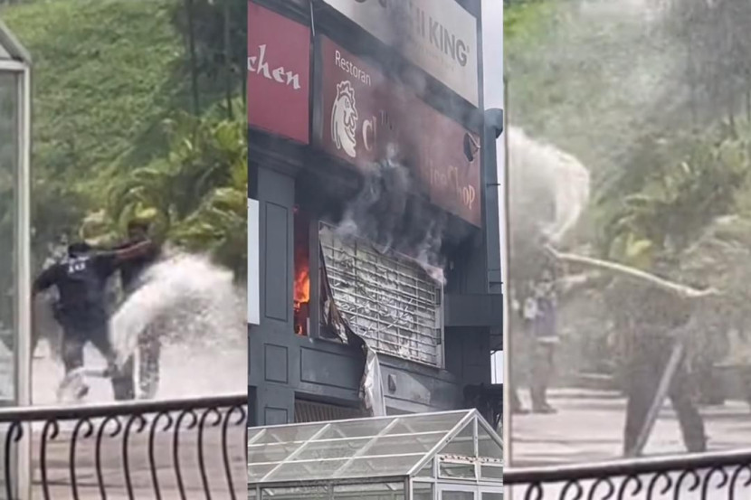 Dalam video yang dikongsi, kelihatan nozel atau hos pemadam api seolah-olah ‘hilang kawalan’ apabila air paip keluar dengan deras dan berpusing-pusing ke kiri serta kanan.